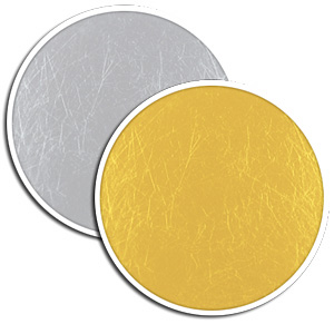 Home> LiteDisc® > Gold/Silver Two-sided material on a collapsible round frame for reflecting any light source. Includes carry bag. |