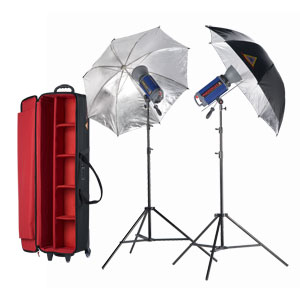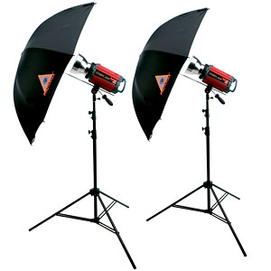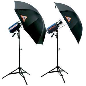 StarFlash® 300watt Dual Umbrella Kit Two 300watt MonoBloc strobes with two 6 inch reflectors, |