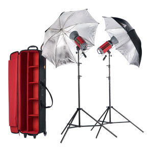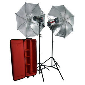 StarFlash® 650watt Dual Umbrella kit Two StarFlash® 650watt MonoBloc heads, reflectors, umbrellas,